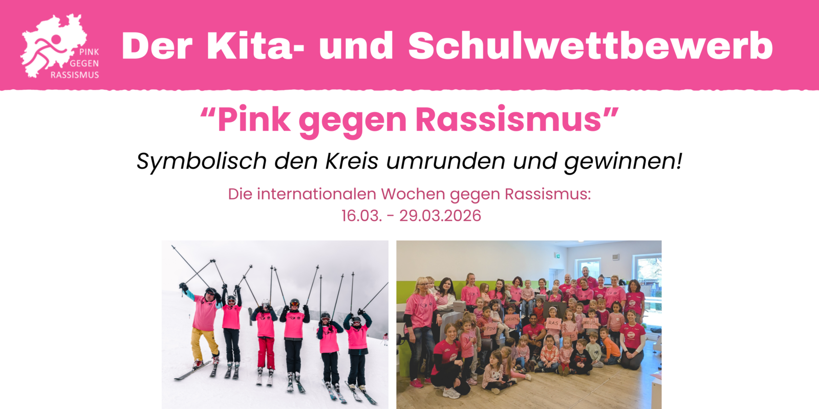 "Pink gegen Rassismus" wird auch dieses Jahr wieder das Motto mit zahlreichen Angeboten während der Internationalen Wochen gegen Rassismus vom 16. März bis 29. März 2026.